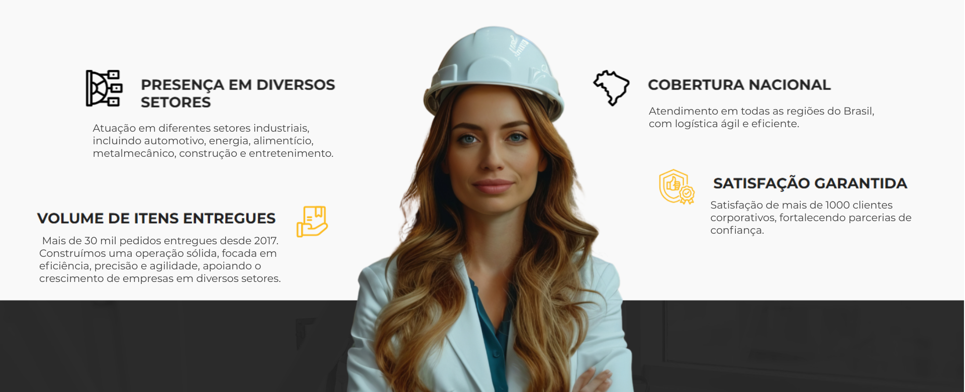 Já atendemos grandes empresas de diversos setores, e estamos prontos para ajudar sua empresa também! Oferecemos as melhores soluções em MRO para que você possa ter uma produção eficiente e de qualidade, com produtos de alta durabilidade e confiabilidade.